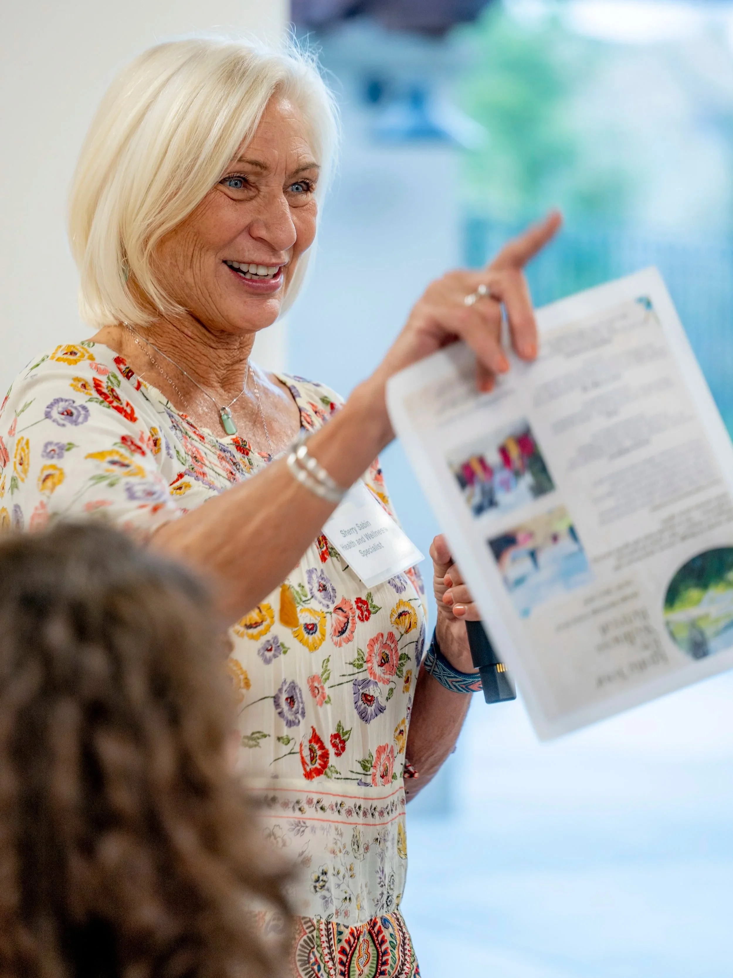 Doors open at 6pm and as members stream in, guests are informally and warmly greeted by our welcoming team, given name tags, and shown to a table. Once seated, the NEWofMarin Leadership Team stands and explains their positions, any recent group news, and the benefits to membership. Our mission statement is then read aloud. Guests are then formally welcomed by the group by telling us their name and how they heard about us.